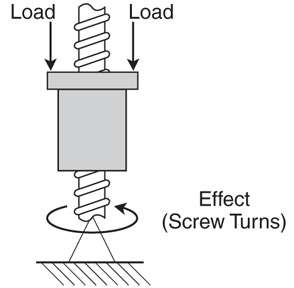 Ball bearing screws can be backdriven. A load on the nut will rotate the screw because of the inherent high efficiency (90%). If backdriving of a lead screw is required in a particular application, the lead should be greater than one third the screw diameter. Ideally the lead should be equal to or larger than the screw diameter.