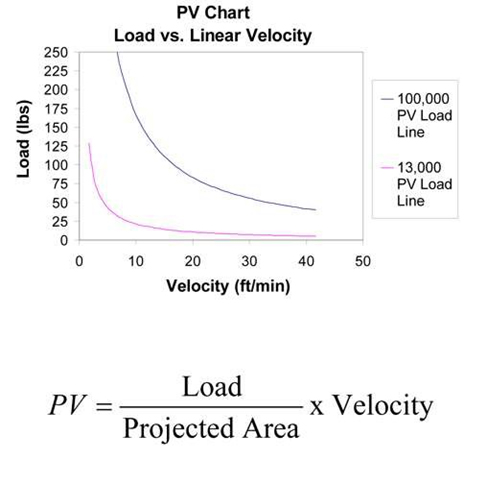The previously referenced PV factor is the product of the pressure and velocity between the nut and screw. It helps determine the load, speed and duty cycle that the nut can handle. Plastic materials have an intrinsic PV rating, the point at which frictional heat causes permanent deformation of the plastic. So the more load applied to a lead screw assembly, the slower it must be turned to avoid exceeding the nuts PV limit. Likewise, the faster the nut is turned, the lower the available load capacity. The primary modes of failure for plastic nuts are wear and PV. By designing within the PV envelope, failure occurs as a result of wear. Wear failure occurs more slowly than a PV failure and can be accounted for through application of case studies and testing.